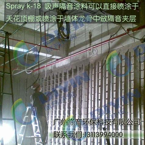Spray k-18系列产品作为全球首创的植物胶原声学涂料,是广州涤音环保科技有限公司独立研发生产的全新的建筑声学涂料,该产品绿色、环保,能解决原有保温隔音材料无法解决的系列问题。