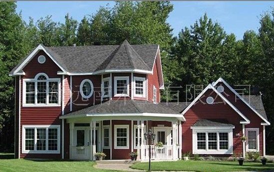 采用SPF做整体框架,OSB定向连接板做整体连接,屋顶为沥青瓦,SBS防水材料,墙体隔音保温采用岩棉,室..