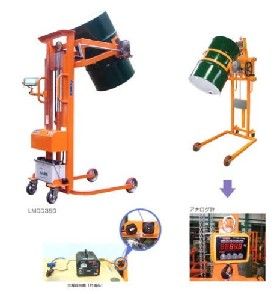 油桶倒料车设计新颖,结构合理,使用方便。适用于工厂、车间、仓库、油库的圆桶装卸、搬运、堆垛。圆桶提升后,可以在空中作大于180度的翻转,停留作业,特别适用于化工,食品车间倒料或配料使用,并可将圆桶装卸汽车、堆垛,配合我厂气动升高油桶倒料车作业,可以极大地提高工作效率,减轻工人的劳动强度,也可以将它改装用于装卸,起升重物,是一种新型理想的多用途的圆桶装卸机械。