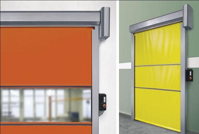 快速门配有进口的柔韧结实的门帘,不透明织物部分厚1.5mm,透明可视部分厚度为2mm,可以满足不同的情况下长期门体高效稳定的运行。