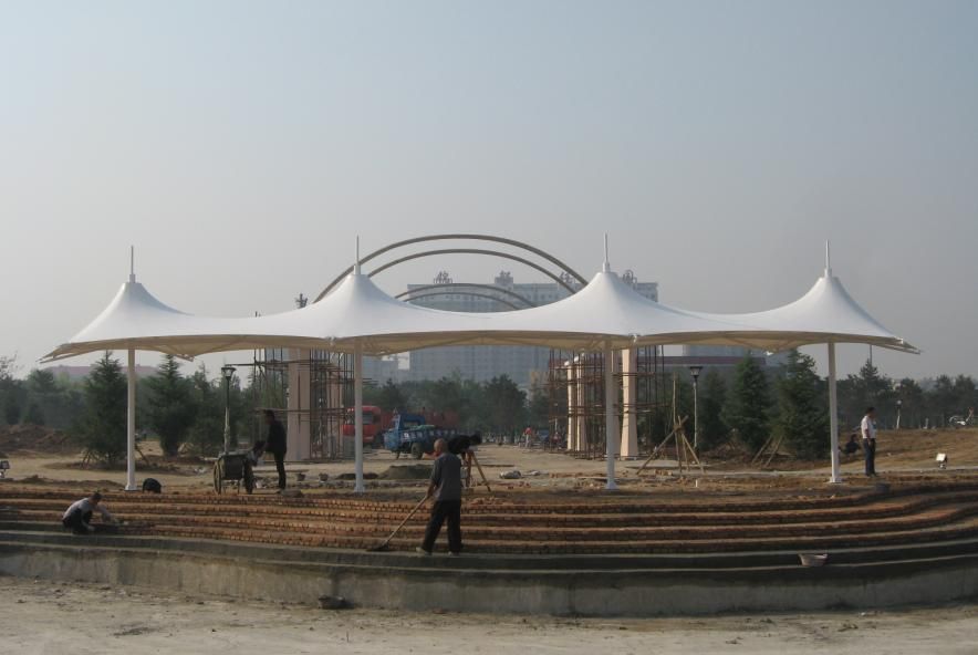 厂家主营:各种膜结构定制 停车棚 非机动车棚 景观棚 球场雨棚 看台遮阳棚 出入口雨蓬 污水池反吊膜。 ..