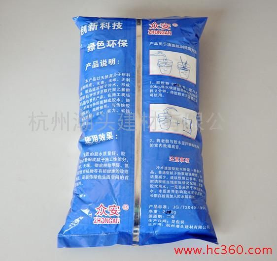 配置的胶水质量好,胶水加老粉配成腻子施工性能好,*、无味,彻底根除甲醛、苯、氨等挥发性有机物等有损健康的致癌物质。