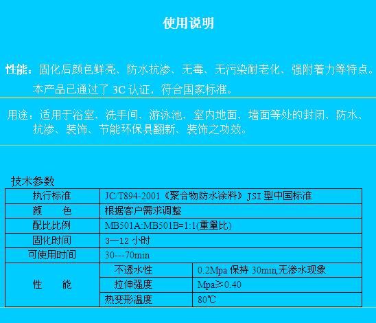 4、优良的耐候性能(-30℃---80℃),耐黄变型能优异。