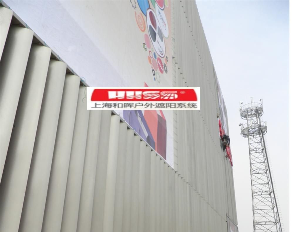 由上海和晖开发生产的中空梭形铝合金百叶适用于:商场、酒店、办公楼、学校、仓库、工厂、展馆、体育场、车站、会议室、花圃、实验室、游泳场、控制室、别墅和私人住宅的外墙、顶面、天窗的遮阳隔热、装饰、采光。其梭形外形是根据太阳一日照射角度的不同而科学设计的。铝合金材质的叶片更是经久耐用。中空梭形百叶比传统布帘隔热性强60%.新型遮阳翻板具有以下特点:隔热遮阳效果好、节能环保、材质经久耐用、防风性强、整体美观大方、梭形中空叶片设计科学、氟碳喷涂不褪色、电控/固定可供选择等特点。