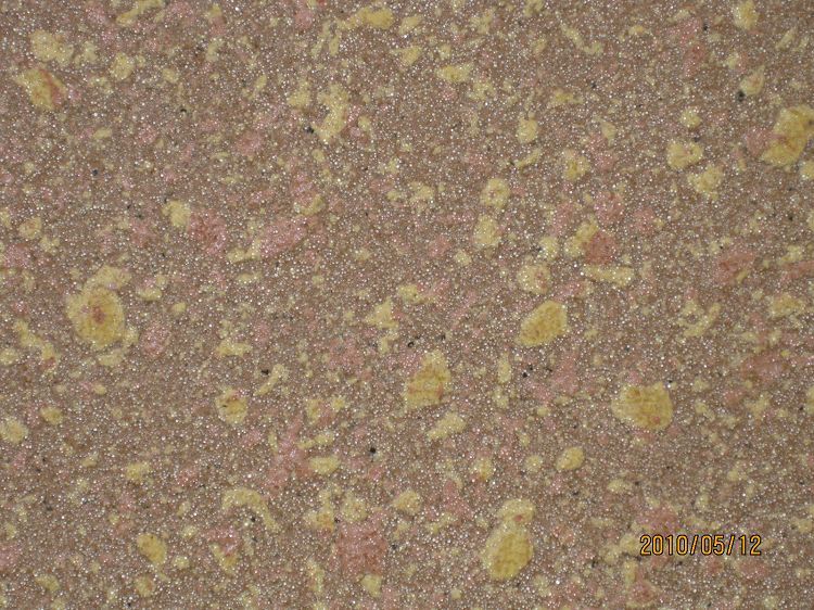 玻化石漆主要由高分子聚合物、烧结彩砂(烧结玻璃微珠)及关助剂制成,干结固化后坚硬如石。玻化石漆装修后的建筑物,具有天然真实的自然色泽,给人以高雅,和谐,庄重之美感,适合于各类建筑物的室内外装修。特别是在曲面建筑物上装饰,可以收到生动逼真,回归自然的功效。