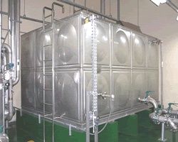 本公司锈钢水箱是为工程建设、高层住宅供水系统配套的*供贮水设备(俗称高位水箱或低位水箱)。该产品选用国际通用食品级不锈钢SUS304板材制造,新概念设计,在生产过程中采用数控冲压技术成型,制成凸面模板,根据客户尺寸要求所需要的模块灵活组合,再进行现场拼装焊接来完成。各项指标符合国家行业标准,符合我国法规中的水质标准和食品卫生标准。