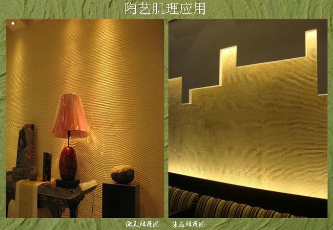 德美硅藻泥不仅可以做出各种液体壁纸的图案肌理,而且,更令人注意的是,可以充分发挥德美硅藻泥壁材粉加水搅拌成泥的性能优势,充分结合室内设计师、业主客户和墙艺师的创造才艺,精心塑造不同的三维立体肌理,产生比液体壁纸、肌理漆等艺术涂料更为艺术美观、生态环保、更具健康功效的艺术效果。德美硅藻泥能够满足客户DIY的个性需求,塑造更个性,更美观的艺术墙壁。