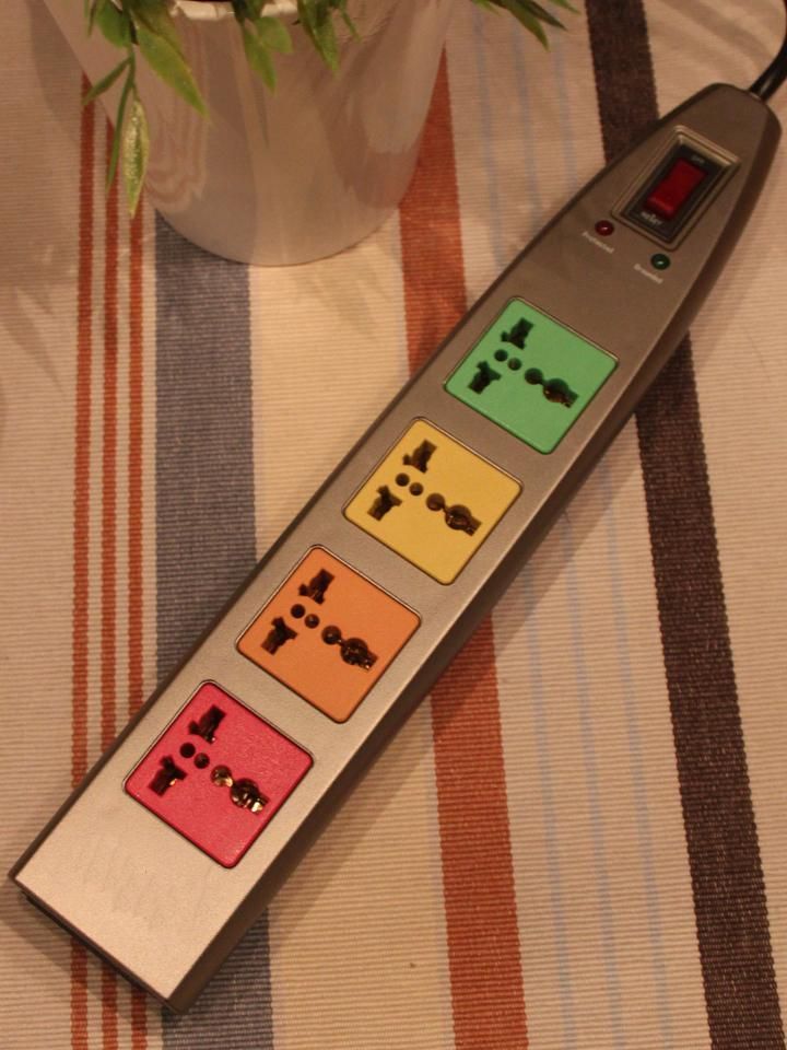 国际潮流*设计的插孔色彩搭配。超宽插孔间隙时尚防雷电源转换器,即使大型适配器也能容纳其中,互不影响其他插孔的使用。