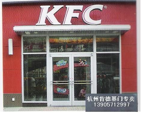 肯德基门配置:快速拆装式门框+门扇+闭门器+门轴+锁具+推拉字+调节工具+润滑脂+门挡及膨胀螺钉+玻璃胶(或胶条)+密封胶+玻璃插片+多种固定螺丝+安装指导书 肯德基门做工精细、精巧美观、不会变形、坚固耐用、安装方便等特点。适合于快餐厅、商铺、娱乐场所、写字楼、购物中心、连锁专卖店、工厂、办公楼等高频率使用场所。我们可以按客户实际需求设计加工不同的外观、尺寸、颜色的门,亦可提供安装指导服务。