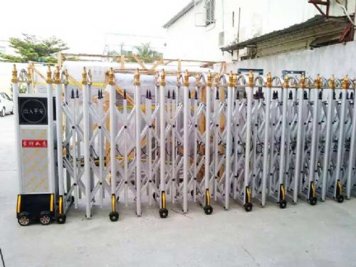 电动伸缩门主要由门体、驱动器、控制系统构成。伸缩门的门体采用铝合金及普通方管管材制作,采用平行四边形原理铰接,伸缩灵活行程大。电动伸缩门的驱动器采用特种电机驱动,蜗杆蜗轮减速,并配有手动离合器,停电时可手动启闭,伸缩门的控制系统有控制板,按钮开关,另可根据用户需求配备无线遥控装置。
