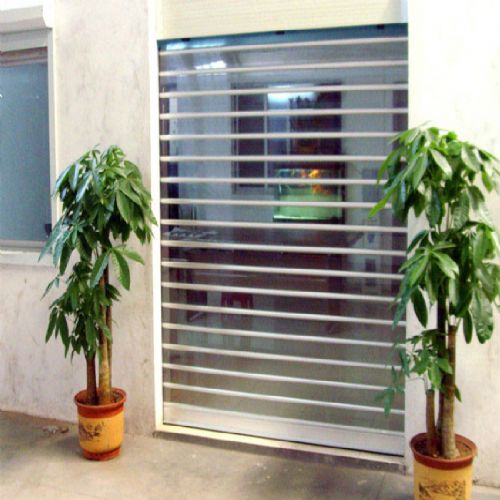 - 定做水晶卷帘门+铝合金穿条水晶门