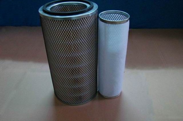 空气滤清器内外滤芯为纸质滤芯。这种滤芯,外滤芯采用微孔滤纸,表面经树脂处理。在发动机工作时,空气透过微孔滤芯将灰尘滤去,保证清洁的空气进入增压器再进入气缸。内滤芯为高级毛毡制成,是安全滤芯。在使用中,外滤芯的周围会粘上一层尘土。清洁空气滤清器外滤芯时,不能用水、油,应防止油水浸染滤芯;常用的方法是轻轻的拍打。具体做法是:在轮胎上轻轻地敲打,将灰尘拍打出来,再用0.4MPa以下干燥压缩空气吹扫。吹扫时,应从内向外吹。
