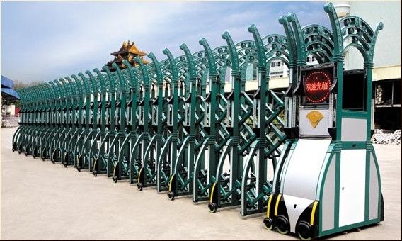 电动伸缩门主要有伸缩门体、机头、控制器三部分组成。
