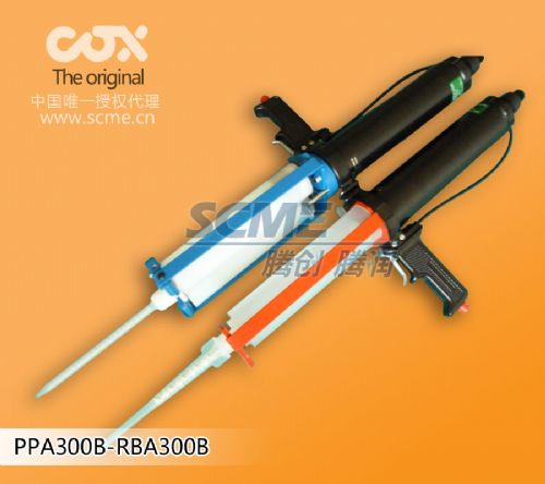 RBA310B/PPA300A-B/ RBM 300X(RBM 310X)是一款新高性能双组份AB气动胶枪,广泛争对铝合金门窗玻璃角码涂胶,铝合金门窗断桥孔注胶,双组份聚氨酯密封组角胶*COX牌 气动AB胶枪。操作工艺:铝合金门窗生产工艺先将双组份组角胶打入型腔内,插入角码,确保胶均匀涂在角码上,安装另一端型材,上组角机撞角打孔,向预制孔内注入双组份组角胶,直至卡位点有胶溢出,注胶工艺完成。幕墙等封灌喷涂打胶固化胶玻璃间密封艺术玻璃装饰、家具、立式粘接密封, 玻璃装饰、家具粘接密封。硅酮结构密封胶,耐候胶,树脂胶、硅酮建筑密封胶,隐框幕墙玻璃与铝框的粘接,耐候胶是板缝密封用胶。幕墙结构胶干挂胶、有机硅结构胶。