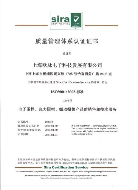 2.安全性:主机在电子围栏上产生约8000伏低能量脉冲电压,该电压能有效击退并威慑入侵者,由于其脉冲间隔1.28s,每个脉冲*大能量低于5.0j,每个脉冲*大电量0.98mc,输出电流超过300ma的时间0.91 ms,脉冲作用时间3.12ms(欧洲检测报告cca-dk 98-00166),对人体不会构成伤害。入侵者强行突破时,主机会感知并产生报警信号。