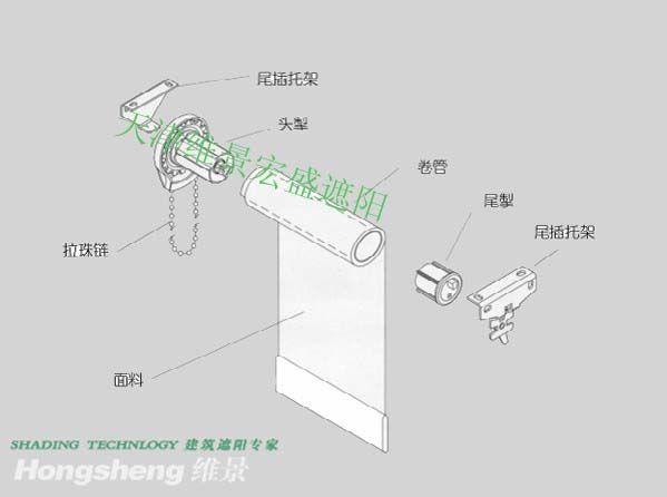 ●拉珠卷帘由槽管、制头、制尾、拉珠、安装码、下
