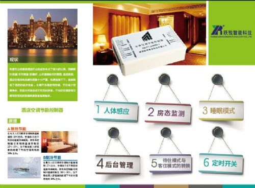 客人在服务台办理入住手续时,服务台可开启*房间空调进入客住温度模式,当客人进入房间时无需操作空调就已达到舒适温度。已入住房间取电房卡插入后自动进入客住模式。
