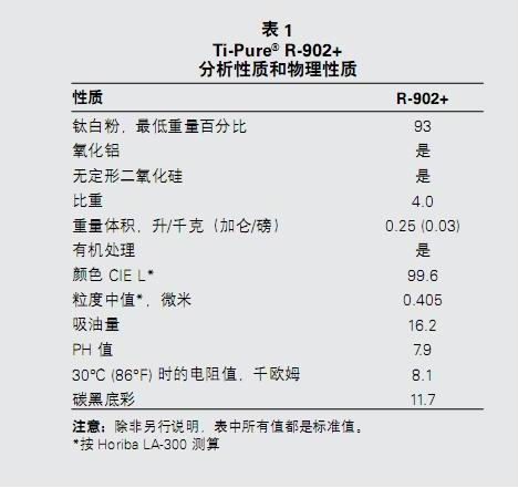 Ti-Pure R-902+ 是一种多用途型颜料,可以在室内外有光和半光体系中表现出优秀的性能,*在此类应用中使用。尽管与其它牌号相比,R-902+ 的耐候性不够理想,但它可以出色地平衡各种性能。