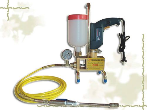 新机使用时,请先以润滑油倒入机器料杯内开启电源循环一遍。机身及周边设备用软布沾润滑油擦拭一遍。将PU发泡止水堵漏剂或环氧树脂搅拌均匀倒入杯内,盖紧杯盖。灌注开关阀扳到OPEN(开启)状态,灌注牛油嘴对准垃圾桶,开启电源开关,将管内剩余润滑油挤出到浆液喷出为止。(润滑油可是机身及设备内部不粘附浆液,以避免堵塞,并起润滑作用)。