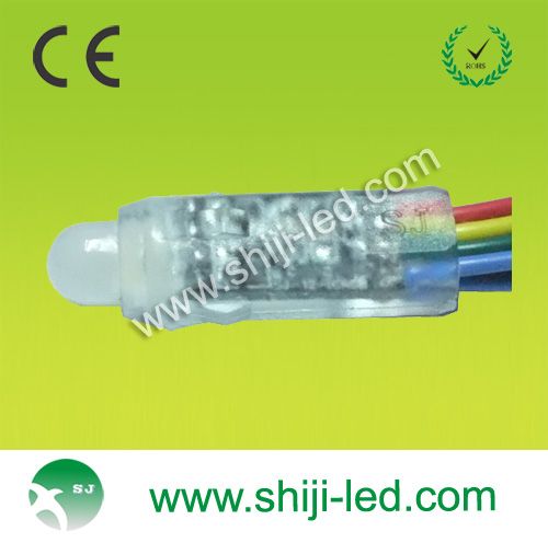 LED全彩点光源内置微电脑芯片,可任意编程控制多个同步变化,超低功率,超长寿命,可实现同步七色渐变,跳变,扫描,流水等全彩变化效果。也可以多个点光源组成点阵屏,变化出各种图画,文字和动画效果,是各种景观灯,大型广告牌,幕墙,舞台,酒吧理想的装饰产品芯片:广稼、晶元工作电压:5V 尺寸:12MM发光角度:90-180额定功率:0.3W