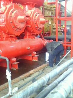 检查密实:灌浆结束后,用铁锤敲击设备基板,如发出叮叮声则表明灌浆层密实,如发出咚咚声则表明灌浆层空鼓。