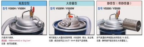 配有消音器。在吸嘴处安装上消音器的话能降低噪音15dB以下。如果大容量的配消音器需要安装夹具两套。