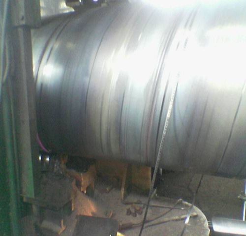 (1)原材料即带钢卷,焊丝,焊剂。在投入前都要经过严格的理化检验。 (2)带钢头尾对接,采用单丝或双丝埋..