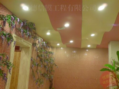 其次,在安装时,*好由专业人士进行安装,因为在安装的过程中要求较为严格,比如龙骨安装的时候要保证保持平整,一般来说间距偏差应控制在1.5厘米之内。如尺寸有偏差,应先予调整后再按顺序镶插,不得硬插,以防变形。洗浴场所的吊顶材料宜采用软膜等材质,因为洗浴场所是经常沐浴洗漱的地方,潮气会很大,用木质材料容易变形,这与防水做得好坏无关,而如果你是采用软膜的话,就可以避免很多麻烦,因为拉膜天花表面是经过防雾化处理的,并不会因为环境潮湿而产生凝结水,而且能够抵抗及防止微生物(如一般发霉菌)生长于物体表面上,有效地防止霉变,因此能给一般用户提供了一种额外的保障,尤其适合浴室,医院,学校,游泳池等。是香港医学会**使用产品。