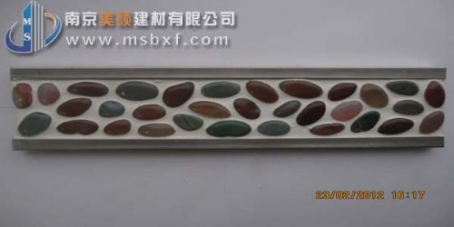 装饰边条是美硕新研发并推广的一种产品,就边条的框架材质不同可以分为三个类型:铝合金、不锈钢、黄铜三种类型;而这基材框架内可以进行多种材质的填充,可以是马赛克、雨花石、石材、金属条、PVC等等。而马赛克和雨花石是我公司重点力推的两个系列。特别是雨花石,在不同的框架内填充南京特有的自然雨花石,使产品色彩丰富,样式精美。