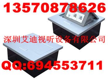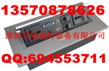 是由深圳艾迪视听设备有限公司生产并提供,本产品选用硬质防锈铝板,拉丝氧化着色,尽显典雅;采用气动弹杆与德国进口部件组成机械锁定装置,结构紧凑精巧;将语音、数据、音视频、USB、VGA、电源等要能集于一体。使用时,轻按连接盒的盒面,连接盒即时释放机械锁定器,接口盒面被气动式结构平滑打开,完全展现出连接接口面。使用完毕后,只需轻轻按下接口盒盖,机械锁定器立即锁定连接盒。锁定后的连接盒面与桌面保持齐平,所有接口被巧妙地隐藏起来。