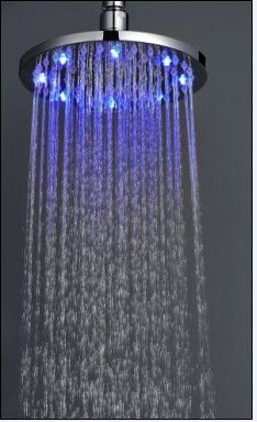9)淋浴头接通水源后无须电池,在喷洒水的瞬间会发出各种颜色的光,即便晚上在浴房洗澡时不开灯也非常亮;