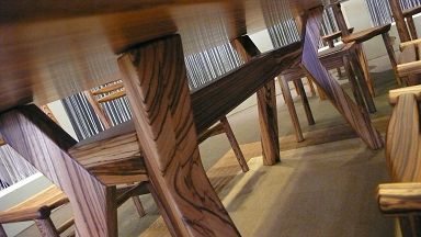 无论是用树桩做成的茶几 还是一块整体板巧制的书桌 椅凳 饰品等 都有着斜径切的质地纹理 浅黄色的肉质 深咖啡色的年轮线 非常漂亮 据店主介绍这些家具源自从非洲远道而来的乌金木原料 因为其纹理非常突出 处处散发着奇异的骨感美 人常说物以稀为贵 乌金木家具之所以珍贵 不但引起突出的原木材纹理和强烈不原木材对比度 更因它色彩醒目且极具流动感的天然金色和黑色曲线使乌金木的每一面都蕴含着浓郁的气息 因此 无论是用乌金木做成的书柜 书桌 沙发 椅凳 还是躺椅等 都因其突出的纹理及异域的骨感美等特点 将其浓郁的肌理美展现出来 使人既有温润 踏实 亲切的感受 优惠油然而生出一种至尊至贵的高尚追求