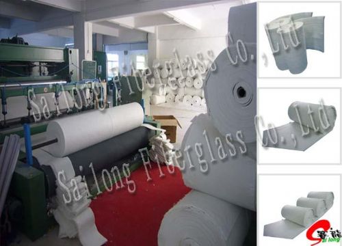 深圳市 赛龙玻璃纤维有限公司生产的玻璃纤维针刺毡是采用E型玻璃纤维纱束为原料,经纤维截断机短切成每股二寸至三寸长的短纤,再经梳棉分解、膨化成极微细之毛毡状。送入轧针机利用数千支轧针上下连续缝刺而成。