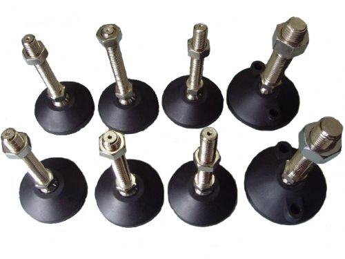 国家标准配件,非标准的可定做。铁脚盘调节脚: 碳钢镀锌螺杆, 铁皮包橡胶底盘固定蹄脚,底盘直径规格有40D及55D,螺杆长度及大小规格多任选。