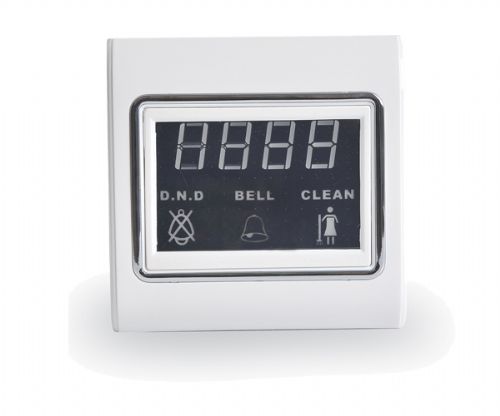 按下“请即清理”开关,触摸屏的“请即清理”图案背光被点亮,提示房间需要清理,让服务员很清晰知道客房需要清理的请求。