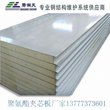 本公司引进意大利技术韩国连续生产线,将聚氨酯 (PU) 的物理特性及独特配方,应用电脑控制全自动化的生产线,让高温发泡的聚氨酯与彩涂钢板一体成型紧密结合。将硬性的彩钢与软的化工原料相互结合,配合聚氨酯 PU 发泡成型机创造出当今建筑师、设计师、工程师梦寐以求的*新科技环保建材――聚氨酯 (PU) 彩钢夹芯板。
