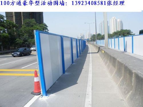 100方通豪华高档型彩钢板活动围墙采用钢结构柱、双面彩钢板通过螺栓接而成。其全部部件均由标准件构成,现场任意拼装,安装周期短效果好颜色可根据要求特别制作。可重复拆装使用,无建筑垃圾,外观靓丽。