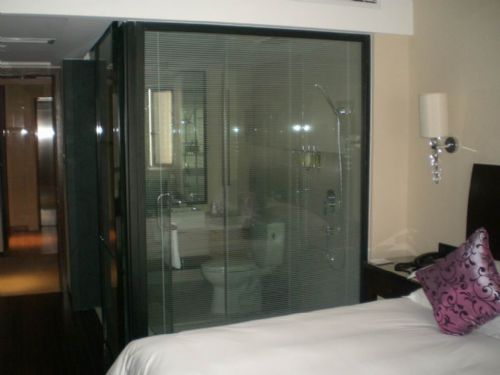 遮阳性 中空百叶玻璃的透光折减系数*低为0.12,营造舒适,静怡的室内环境,中空百叶是完全密封,角度调节或是叶片的收放都是通过外部的磁控开关或遥控器实现。