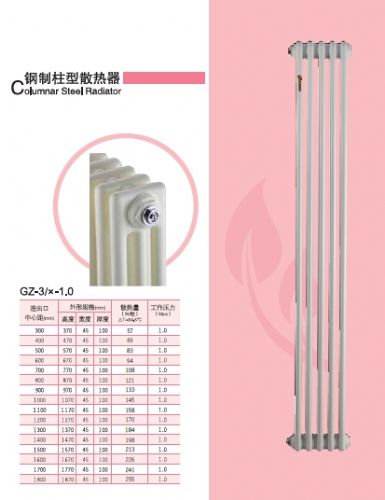 GGZY3-1.0/1800-1.0型钢制圆三柱散热器:钢管柱型散热器安装图集,暖气片钢管结合了重量轻,..