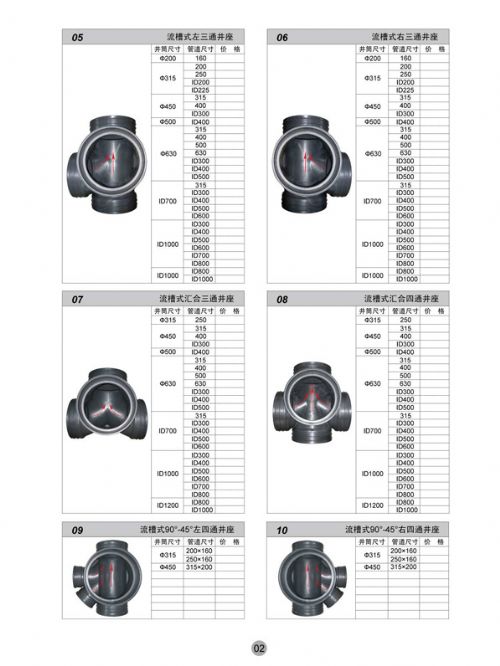 一、产品概念: 1.走向:根据水流方向的不同,可以分为起始井座、直通井座、三通井座、90度弯头井座、四..
