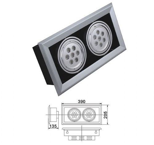 LED三头斗胆灯36W 格栅灯盘12W*3