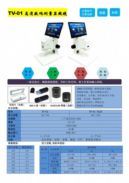 FLY-MVCF1一体式视频显微镜为富莱公司最新产品,外光简洁大方,配备LED显示屏,实时显示放大倍数等..
