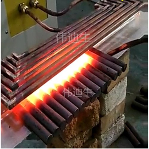 中频锻造炉应用于Φ12以上钢、不锈钢、铜、铝等的规则圆棒料、方形料或其它形状毛坏料等的连续透热