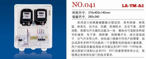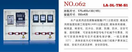 功能特点:箱体内设置独立的配电室、电表室,左右开门,配电室设有进线开关室,出线开关室,分别独立使用,用电户可独立操作出线开关室,进线可配置DZ158、CDB2、DZ15等系列断路器及漏电保护器,表前、表后开关可配置DZ47、CDB3及DZ267等系列断路器及三级漏电保护器,NH2、NH3系列隔离开关,出线端子排。配电室能放置进线总开关,进、出线接线排,进线分开关,出线分开关或漏保,客户更换电表或开关时,可独立操作,不影响其他用电户。箱体设有5个防窃点,合理控制供电单位与用电户的权限,防窃/电效果很好。电表室设有走线槽、可放置各种电子表,可根据用户需要开设IC卡窗口。欢迎来人来电订购,执行价格全国*低!