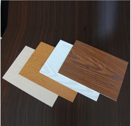 由经特殊处理的PVC 皮膜经高温覆金属板上。具有独特的性能:防火、防水、耐火、耐候等特点,表面形成丰富多样的木纹、石纹、砖瓦纹、织绒纹、皮革纹、迷彩纹、冰纹、羊皮纹、桔皮纹、冰箱花纹等花纹和图案,达到图案美观与防腐耐用于一体的效果