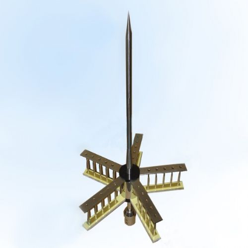 避雷针的中央收集杆和激发器之间的电场迅速增加而造成尖端产生的空气离子化可于极短及准确的时间内放电,因大量电离子的存在,从而使自然的效应减低,产生一预期上行放电通道,可迅速安全地将雷电截击及安全地泄放到大地。
