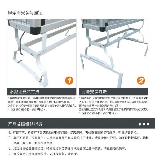 4.灯箱内安装先进的频振式感应升压、高电压、低电流、噪声小、安全可靠