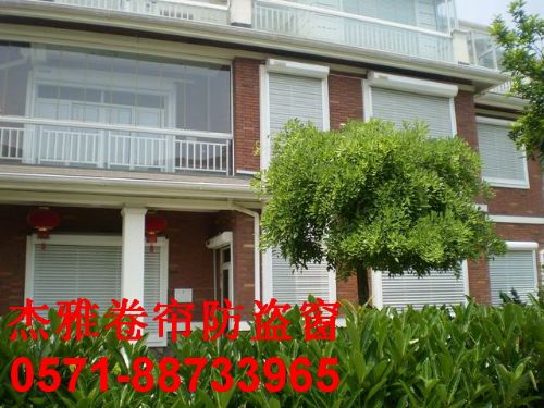 杭州杰雅生产的卷帘窗、电动卷帘窗、铝合金卷帘窗、欧式卷帘窗、防盗卷帘窗、别墅防盗窗、别墅卷帘窗、遥控卷帘窗、卷帘防盗窗、电动防盗窗、外遮阳卷帘窗彩钢固定防盗窗,彩钢推拉防盗窗等系列防盗门窗,集八大功能于一体:防盗、隔音、遮阳、保温、防窥视、防污染、阻挡风雨和蚊虫、采光通风,可同时取代防盗网和厚窗帘; 欧式卷帘窗开启后,帘片全部收卷到顶部罩壳内,美观且不挡视线,十分节约空间。是居家生活的理想选择。