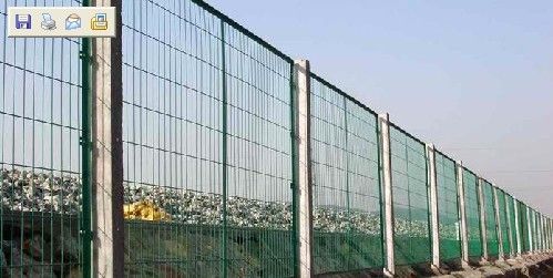 产品规格: 采用直径4mm优质低碳钢丝点焊而成 . 网孔 (mm) 75x150 . 长 X 宽(mm) 1800x3000 .边框 (mm) 20x30x1.5 .浸塑厚度 (mm) 0.7-0.8 .立柱浸塑后 4.8. (mm) diameter 48x2x2200 . 预埋基础(mm) 500x300x300 附件: 防雨帽 连接卡 防盗螺栓.连接方式:卡接
