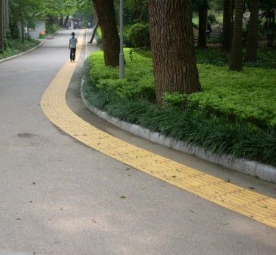 是专门为盲人设计的地砖,防止盲人走错道路,摔倒时防止摔伤。